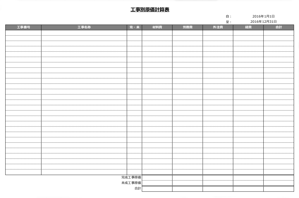 工事別原価計算テンプレート