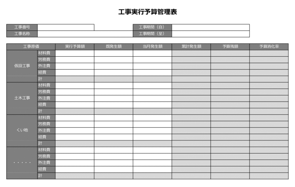 実行予算策定テンプレート